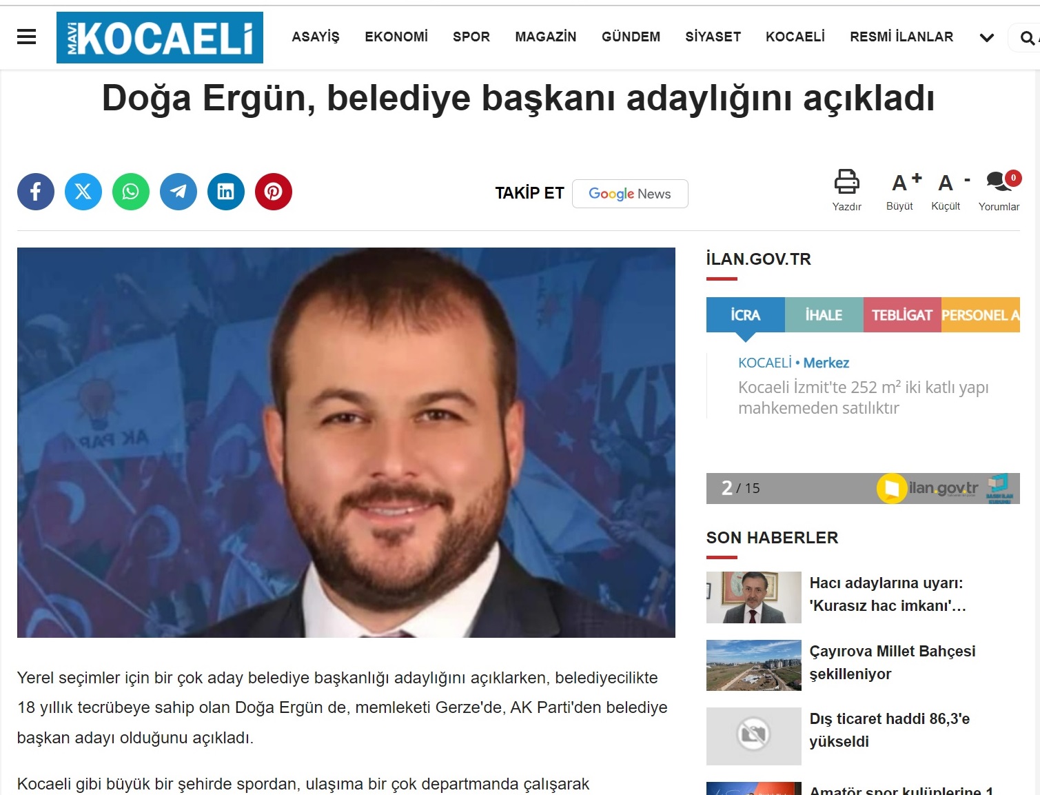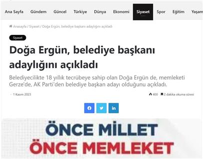2019 Yerel Seçimlerinde Gerze Belediye Başkanlığı için Aday Adayı oldu.