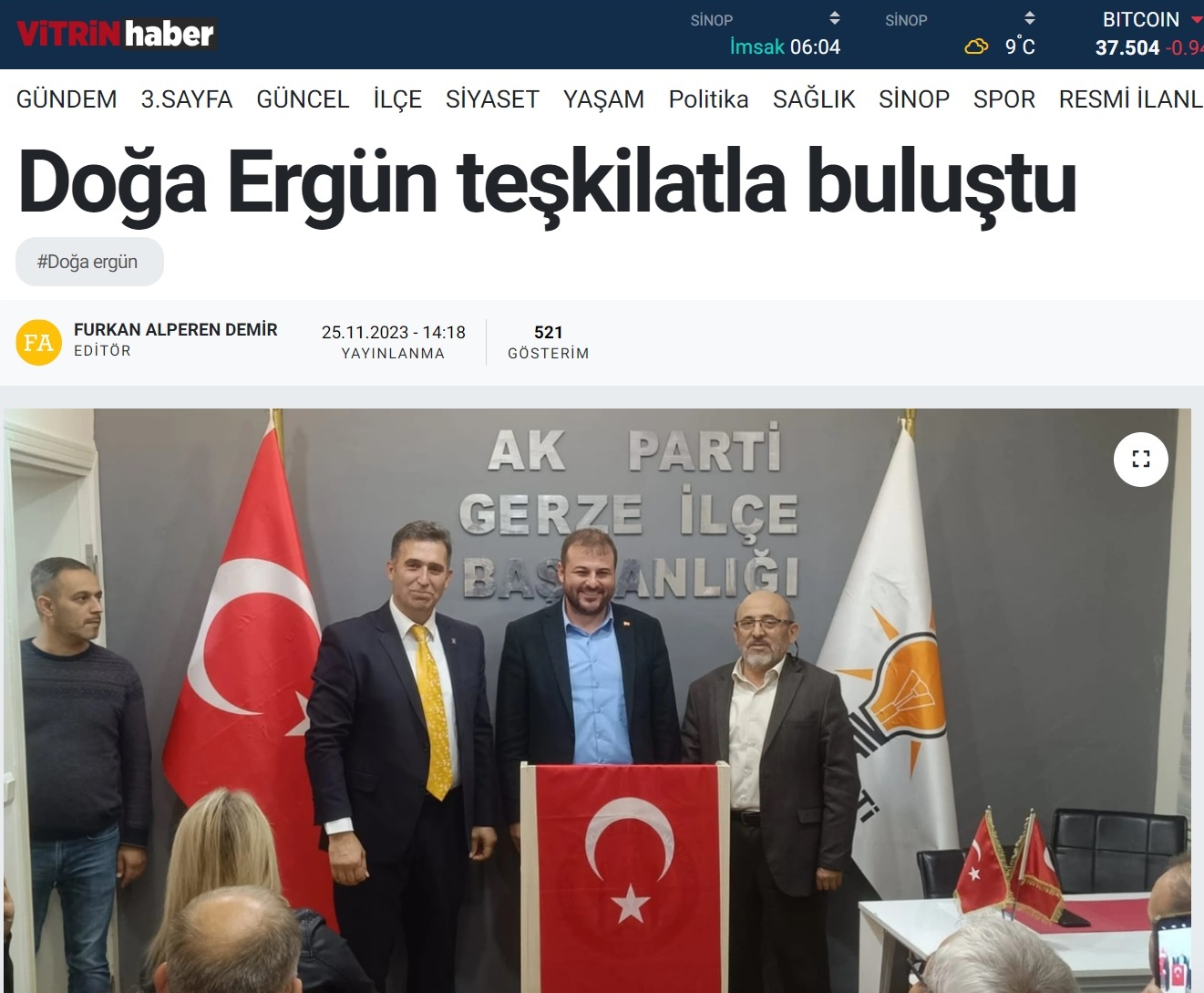 Gerze AK Parti Belediye Baskan Aday Adayi Doga Ergün 26 Kasim Pazar günü yapilacak olan temayül yoklamasi için AK Parti Gerze teskilati ile bir araya geldi.